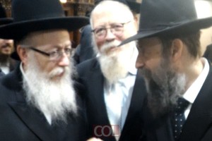 שר הבריאות הרב יעקב ליצמן, בפגישה מיוחדת הערב בבורו פארק עם כל עסקני הבריאות של בתי הרפואה בניו יורק. מימין: הרב יוסף יצחק הולצמן, רב המרכז הרפואי "סוני דאונסטייט" שבברוקלין, במרכ... לסיפור המלא