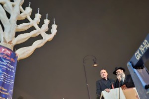 בחנוכיית הענק בלב רחובות: ההדלקה של ראש העיר עם חב"ד