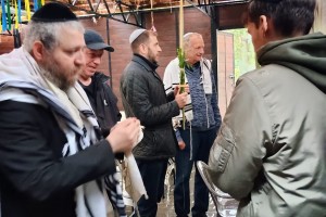 העסקן החב"די מקראון הייטס - ר' חנינא שפערלין אירח בסוכתו לסעודת חול מועד ושמחת בית השואבה את&... | גלריית תמונות