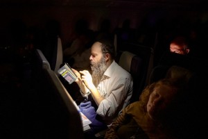 לאור הפנס: שלוחי הרבי מנצלים את הטיסה ללימוד התורה