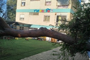 חיפה: עץ גדל מימדים נפל בכניסה לבית ספר 'שלהבות חב"ד'