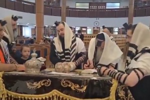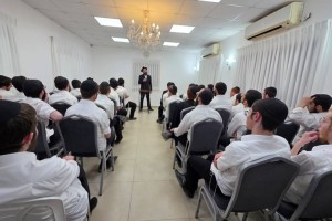 התוועדות ר״ח כסלו בירושלים עם התמימים בישיבת תורת אמת, בהשתתפות אב״ד בני ברק הגה