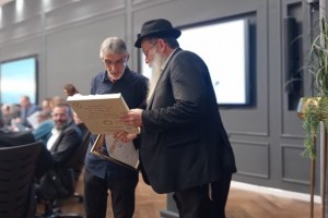 מצה שמורה הוענקה למפקד מחוז מרכז במשטרה ניצב אמיר כהן, ביד יו"ר ועד כפר חב"ד שהודה לו על העמידה לצד כפר חב"ד והסיוע... | לצפייה