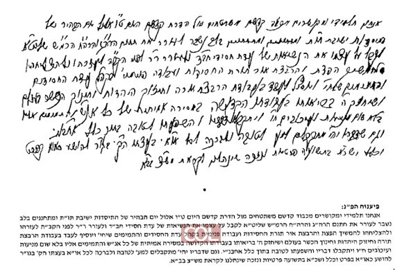 כחלק ממאמצי החסידים והפצרותיהם ברבי שיקבל עליו את הנשיאות, אסף הרה"ח ר' ירחמיאל בנימינסון מנין חסידים ועלו לאוהל הרבי הריי"צ על מנת להקריא פ"נ מיוחד בהעתירם שהרבי יאות לקבל על עצמו את נשיאות חסידות חב"ד.