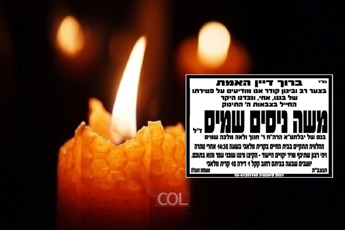 בצער רב התקבלה הבשורה הקשה, כי נפטר הפעוט החייל בצבאות ה', משה ניסים, בן שנה ושלושה חודשים | בנם התינוק של יבלחט"א הרה"ח ר' חנוך ולאה מלכה שמיס מנחלת הר חב"ד | על מועד ההלויה תצא הודעה