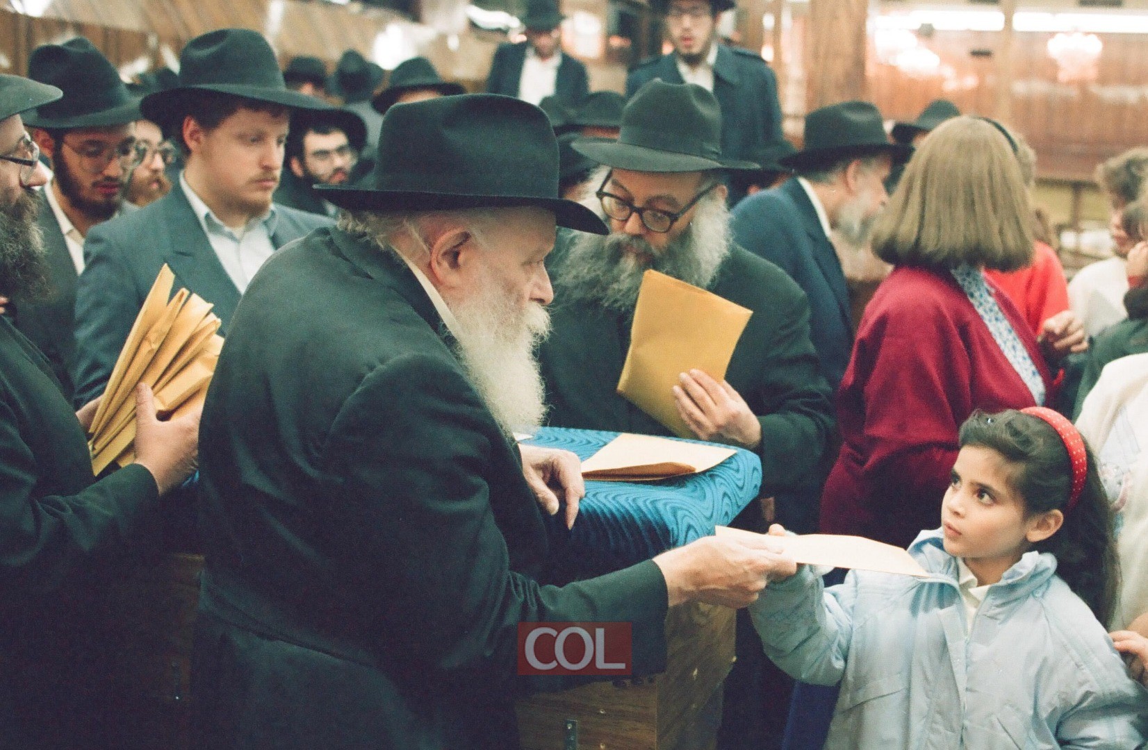 בו' תשרי, לאחר תפילת ערבית ואמירת שיחה עמד הרבי במשך שעות ארוכות לחלק את המאמר שהיה מצורף במעטפה שכללה את מכתבו הכללי של הרבי לו' תשרי, דולר לצדקה ופרוסת לעקאח כשמאחל לעוברים בחלוקה "שנה טובה ומתוקה" או באידיש "האב א זיסע יאר".