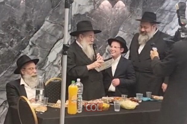"נתינת כוח להיות חי"ל של הרבי": הרב יוסף יצחק אופן העניק לנכדו הת' שמואל, בנו של הרב זלמן אופן, דולר של הרבי, במהלך בר-המצווה שהתקיימה אמש (מוצ"ש). צפו:
