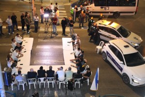 הנהלת עיריית חדרה במפגן ציבורי לאחר הירי על בית חב"ד
