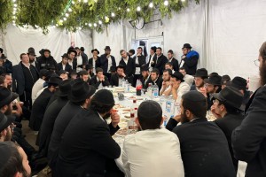 העסקן החב"די מקראון הייטס - ר' חנינא שפערלין אירח בסוכתו לסעודת חול מועד ושמחת בית השואבה את צמרת העיר ניו יורק,... | גלריית תמונות