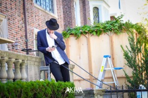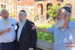 רוקדים ברחוב: הרב זלמן ליפסקר ור' מנדל לוין עם רובשקין