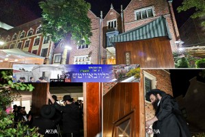 כתף-אל-כתף: הבחורים בנו את הסוכה של הרבי בחזית 770