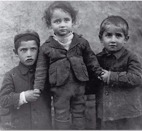 ר' שלום בער גורליק כילד (ראשון משמאל) בעיניים רושפות בתמונה שהעניקה השראה לציור הייחודי