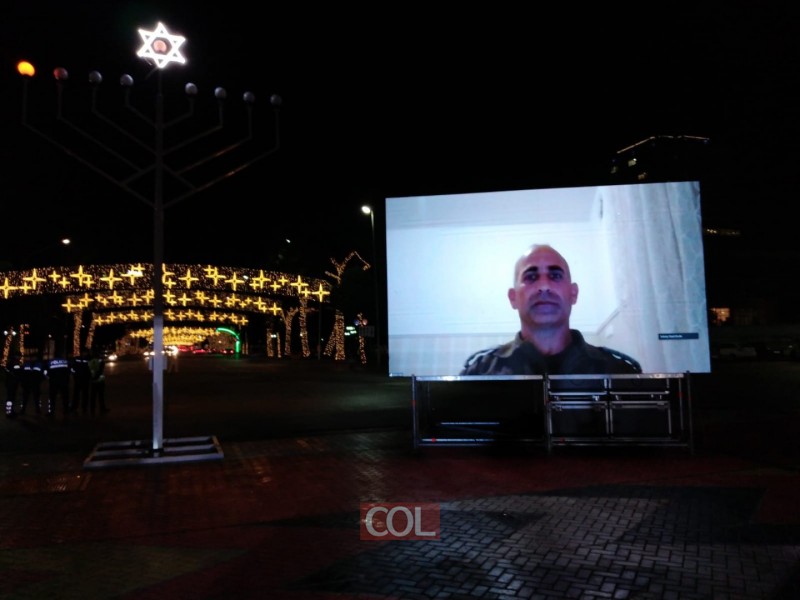 מפקד יחצ"א אלוף משנה גולן וואך שעמד בראש המשלחת הישראלית הדליק את החנוכיה ונשא דברי ברכה בשידור ישיר ממפקדת יחידת החילוץ בישראל.