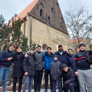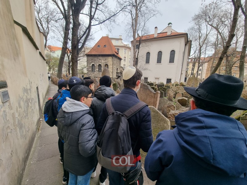 קבוצת תלמידים מבית ספר חב"ד בווינה-אוסטריה, בביקור וטיול בקבר ובית כנסת המהר"ל מפראג בצ'כיה, עם המחנך ר' ישראל וולוסוב
