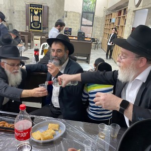 בטקס צנוע: נקבעו מזוזות בבית הכנסת חב"ד '770' ברחוב המגיד ממעזריטש בביתר, בהשתתפות המד"א הרב אשר לעמיל כהן, רב בית הכנסת הרב דוד אופן, הרב שנור מקים בית הכנסת והגבאים