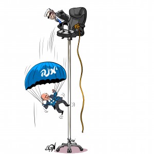 ברית אחים? יאיר לפיד ראש ממשלת המעבר ממרומי כסא השרד מחייך למראה ה'צניחה' של בנט מהפוליטיקה. במכחולו של האמן החרדי מוטי הלר