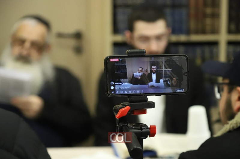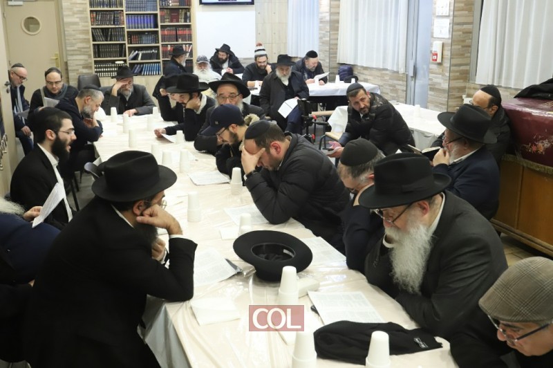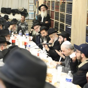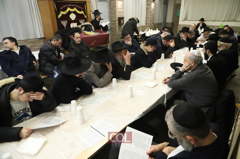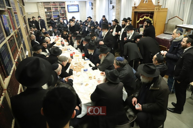 בבירת צרפת: אנ"ש חסידי חב"ד ומקורבים בלימוד מאמר 'באתי לגני' והתוועדות חסידית לרגל יו"ד שבט בבית חב"ד פלאנדר שבפריז, עם הרב משה וישצקי. (צילום מרדכי לובעצקי)