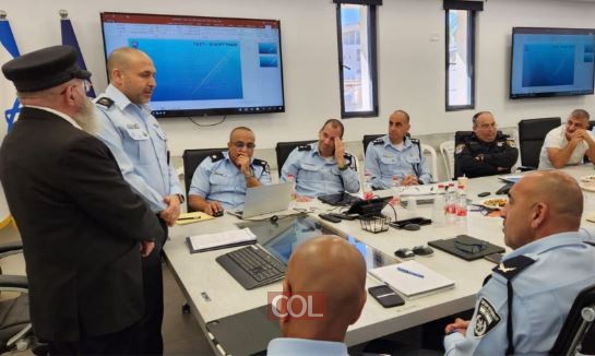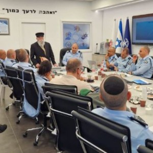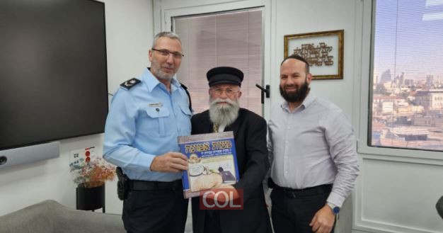 העסקן החב"די הרב יעקב גלויברמן מוסר ברכת חג הפסח ונקודה משיחות הרבי בפיקוד מחוז המרכז משטרת ישראל, בראשות ניצב אבי ביטון מפקד המחוז