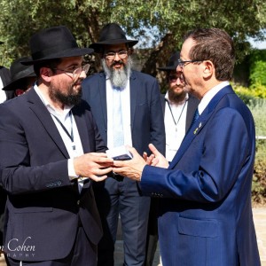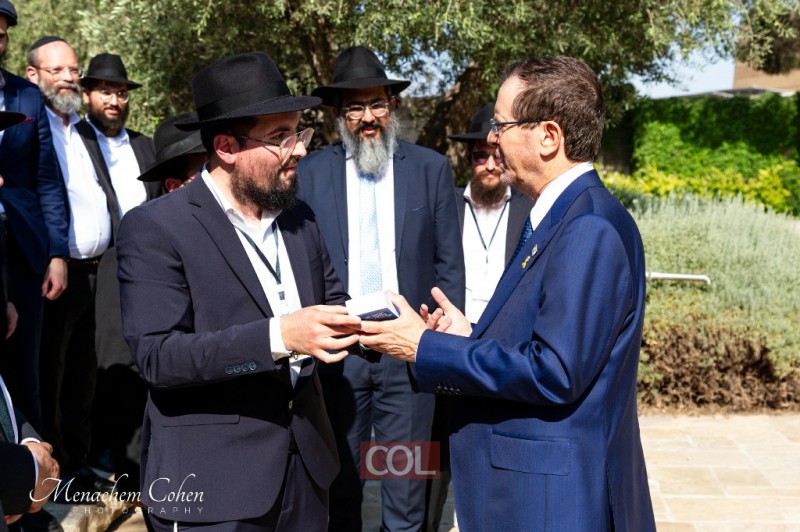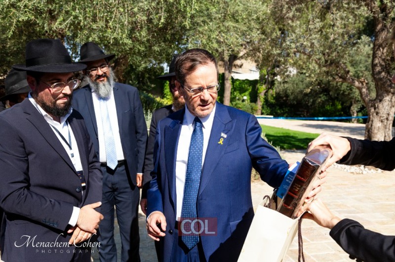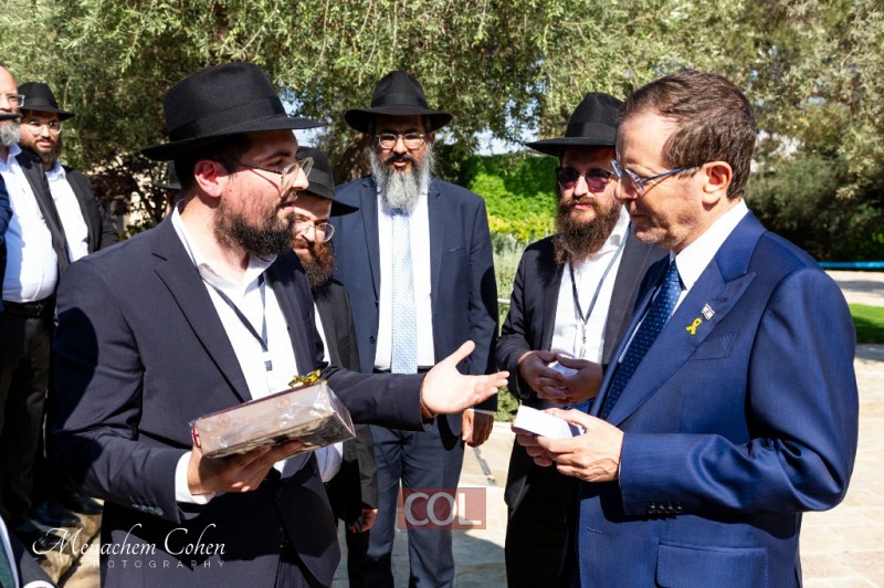 הנשיא הרצוג קיבל ספר 'תניא' שהודפס במיגונית התופת