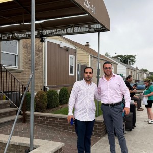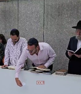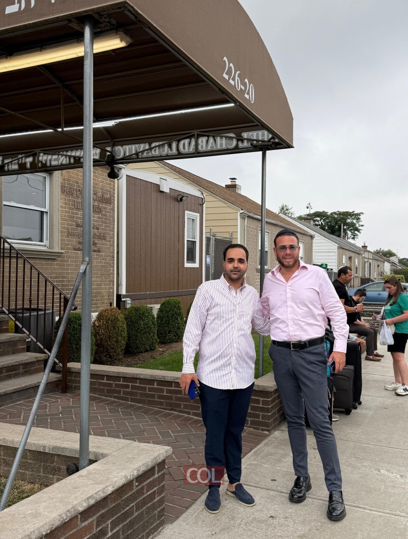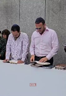 איש התקשורת איציק אוחנה מ'כיכר השבת' והזמר שוקי סלומון בתפילה ב'אוהל' הקדוש של הרבי בניו יורק (צילום: מענדי עקיבא)