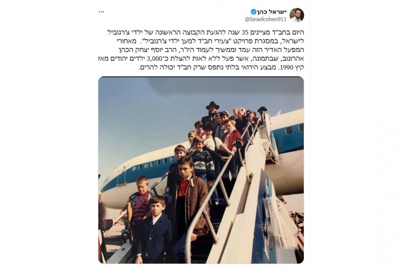 "מבצע הירואי בלתי נתפס שרק חב״ד יכולה להרים": ישראל כהן, בציון 35 שנה להגעת הקבוצה הראשונה של ילדי צ’רנוביל לישראל, במבצע מדהים של צעירי חב"ד