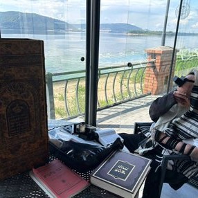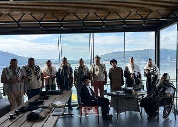 על גדות נהר הוולגה: המשפיע הרב חיים שלום דייטש, ראש כולל ״צמח צדק״ בירושלים ומשפיע ראשי של קהילות ומוסדות ״מעייני ישראל״ בארה״ק ובעולם, בתפילת שחרית במחנה ״גן ישראל״ בעיר סמרה