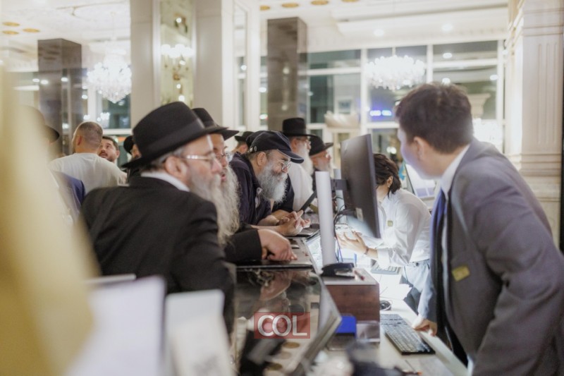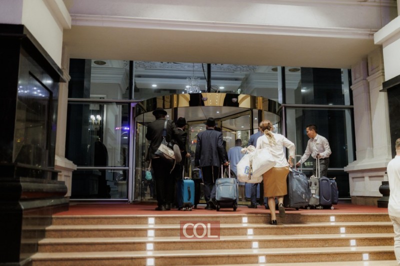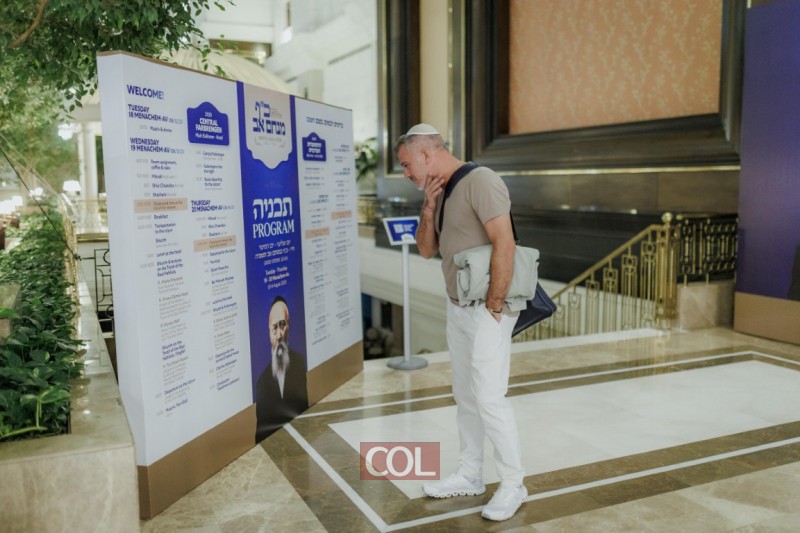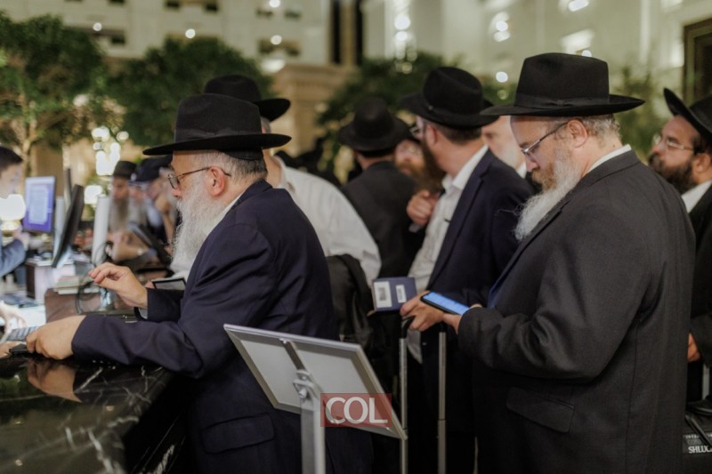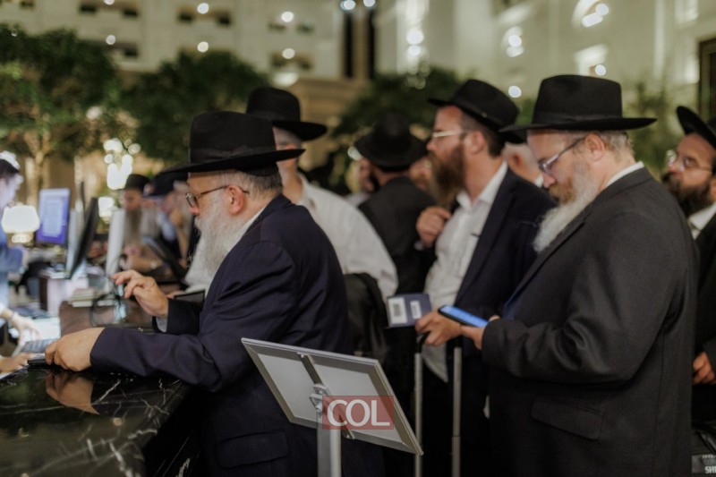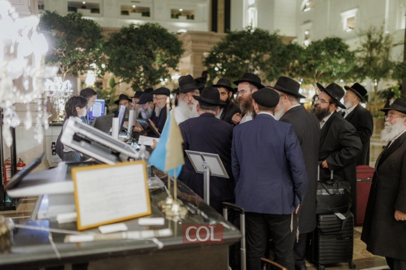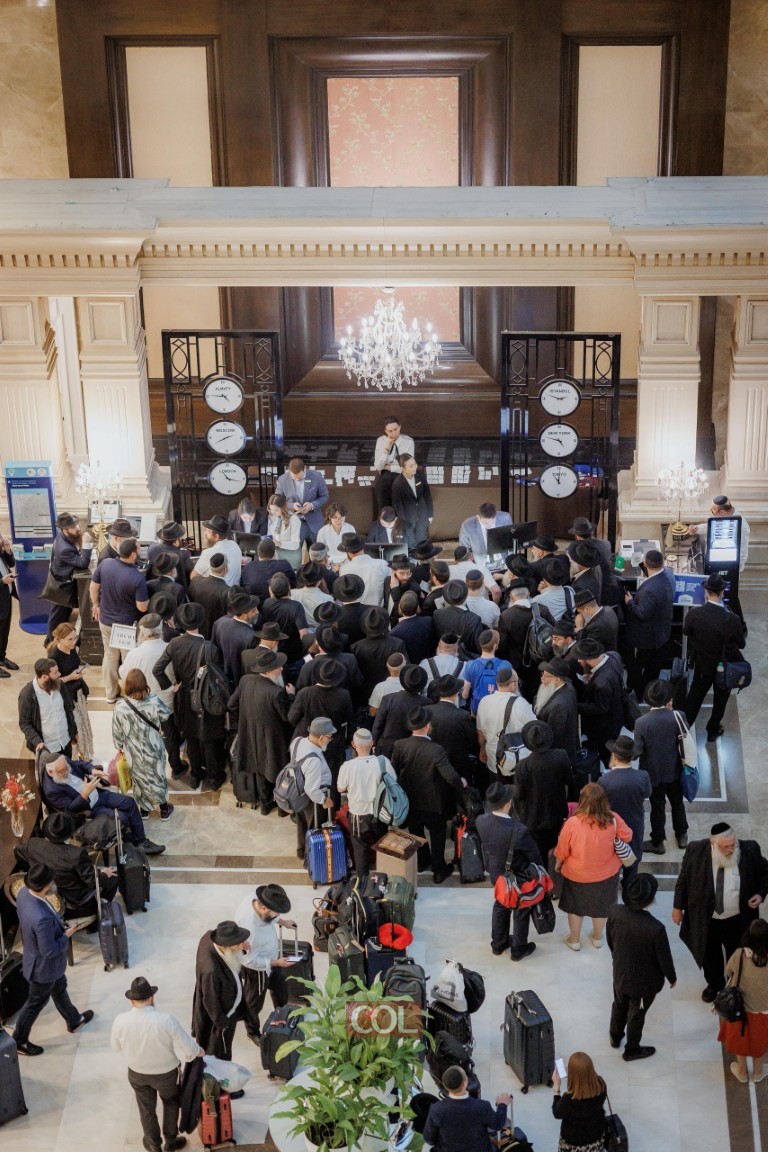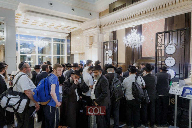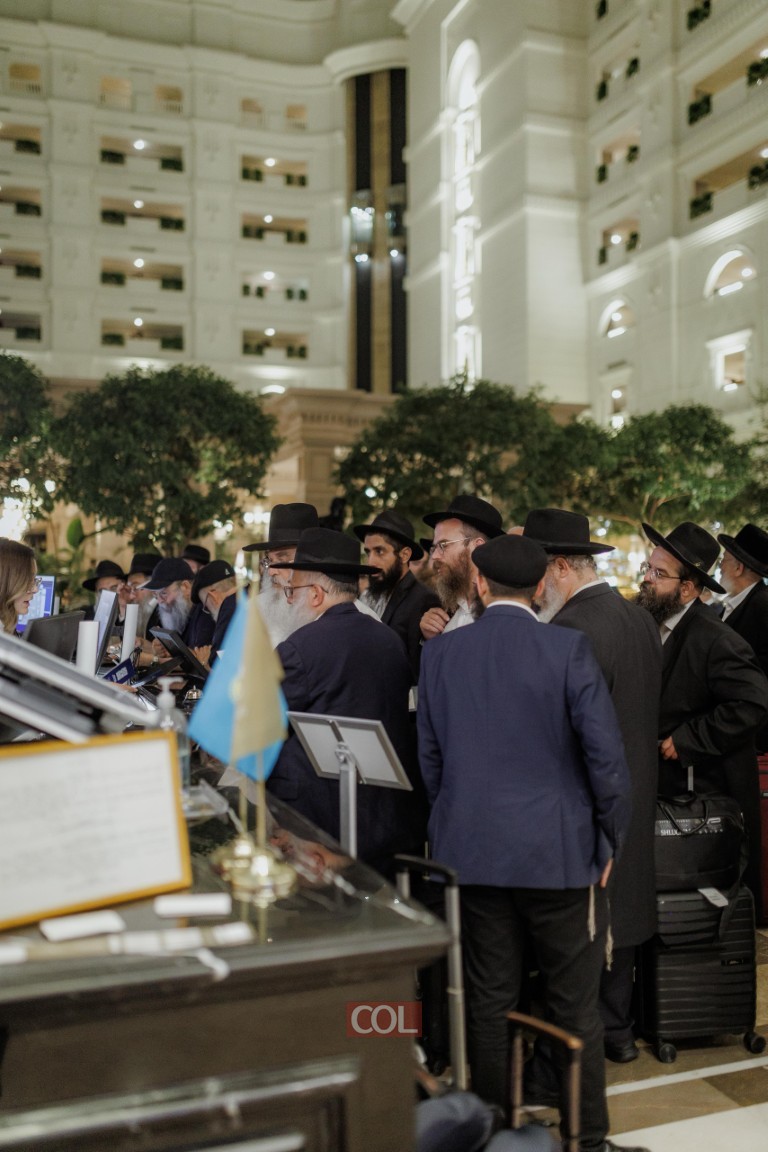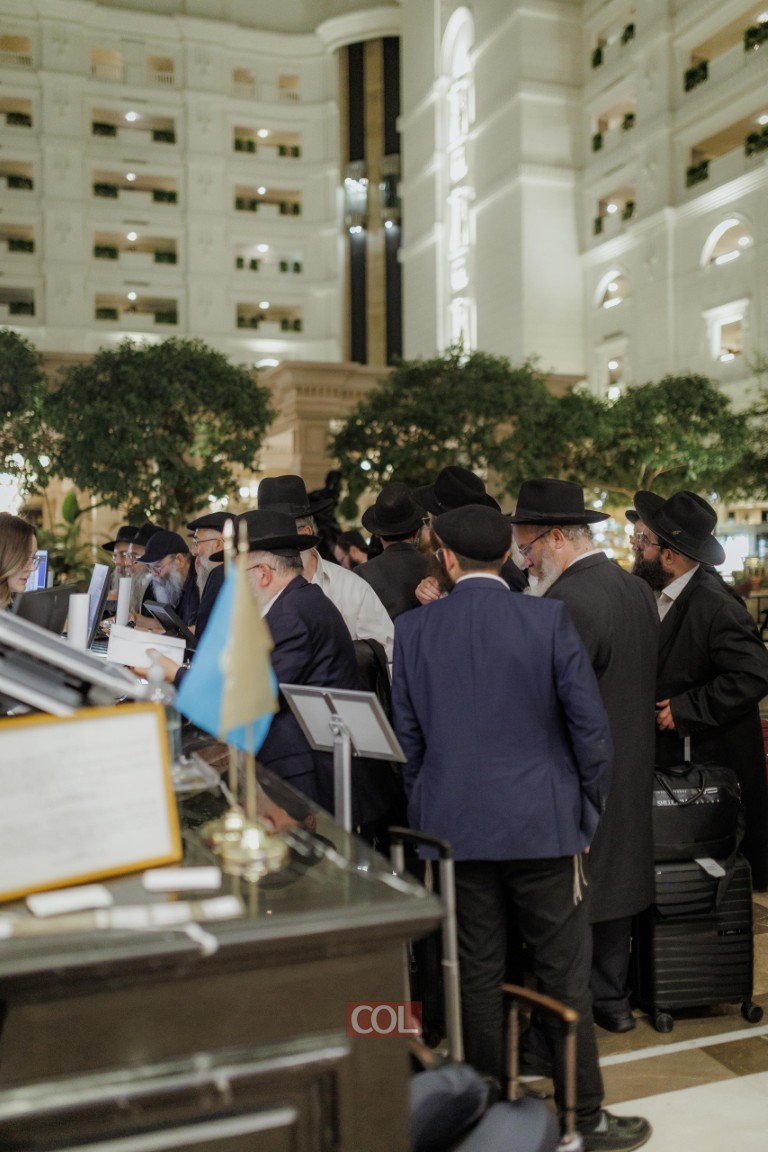 ההמונים התקבלו בלובי המלון המקומי שהוכן מבעוד מועד עם שלטי ענק ועליהם דיוקנו של בעל ההילולא, לצד ציטוטים מופלאים על דמותו.