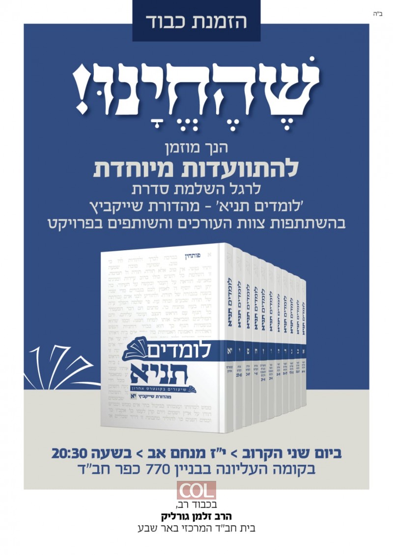 התוועדות לרגל השקת הסדרה "לומדים תניא" מהדורת שייקביץ