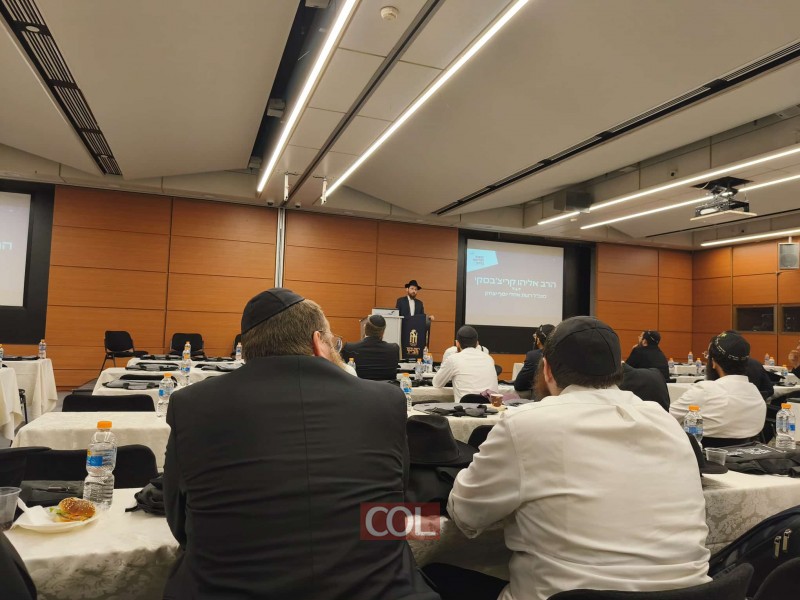 מנכ"ל רשת 'אוהלי יוסף יצחק' - הרב אליהו קריצ'בסקי נואם בפתיחת כנס שלוחי החינוך של חב"ד, הנערך היום באקספו תל אביב