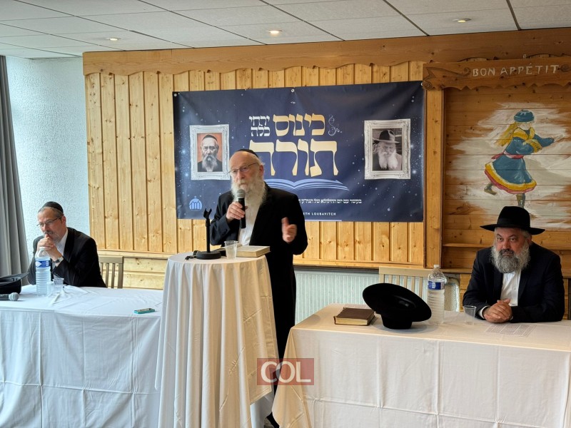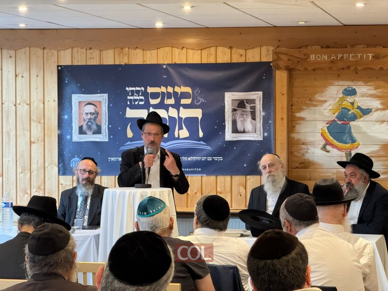מעמד 'ירחי כלה' בסמינר השנתי של 'בית ליובאוויטש' בהרי האלפים הצרפתיים, עם מאות משתתפים ששמעו פלפולים מפי אורח הכבוד ראש ישיבת תו"ת ברינואה שהגיע במיוחד, הרב יחיאל קלמנסון