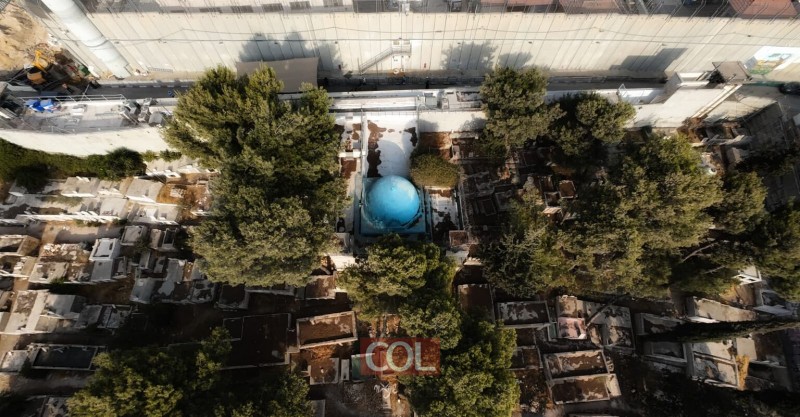 המראה שנגלה לעדשה היה מרהיב: הכיפה ההיסטורית של הקבר, שמוסתרת מעיני המבקרים בשל חומות הבטון המקיפות את המקום, נגלתה שוב ממעוף הציפור. סביב הכיפה נראו בית קברות עתיק, עצי זית פסטורליים ונוף שמזכיר תקופות קדומות יותר.