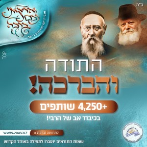 כמה תרמו, לכמה הגיעו ומתי ההגרלה? מעל 4,300 שותפים בכיבוד אב של הרבי ● דוהרים למיליון: המגבית המיוחדת לע"נ רבי לוי יצחק שניאורסאהן ע"ה, אביו של כ"ק אדמו"ר נשיא דורנו ● שותפים מכל העולם נרתמו לחיזוק המהפכה היהודית המשפיעה על רבבות יהודים באלמא אטא ובכל רחבי קזחסטן.
