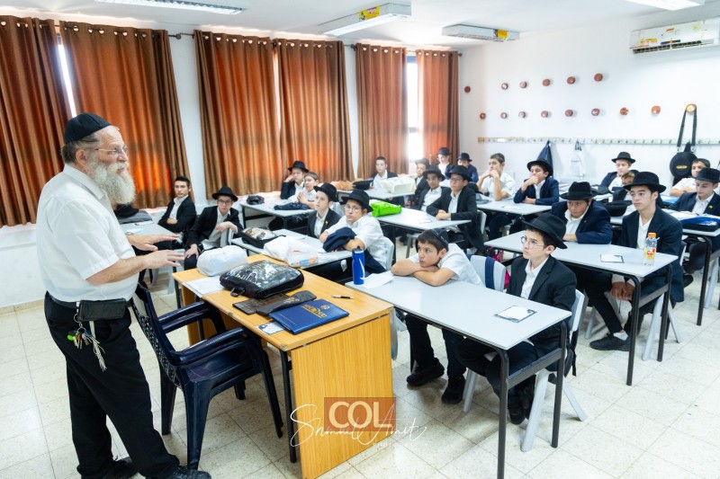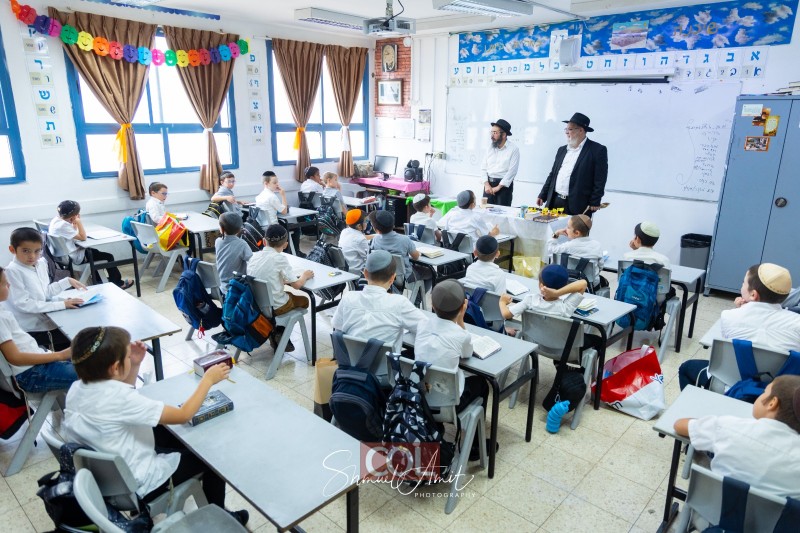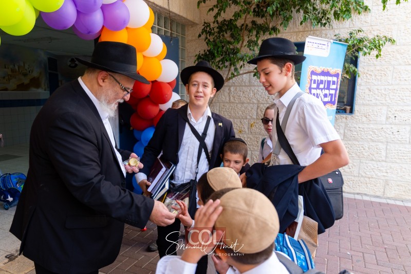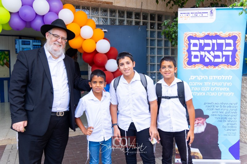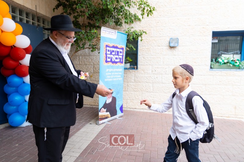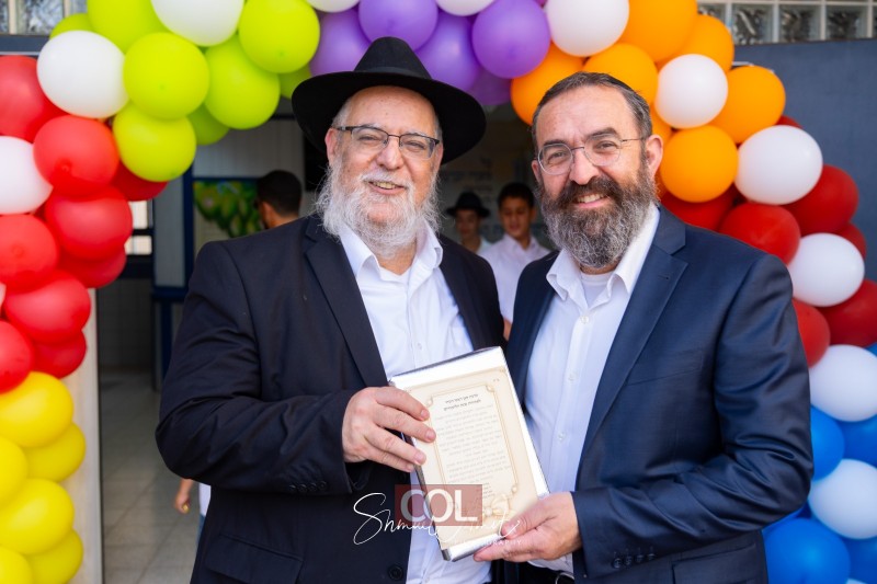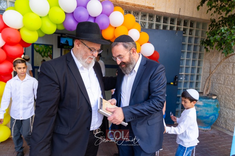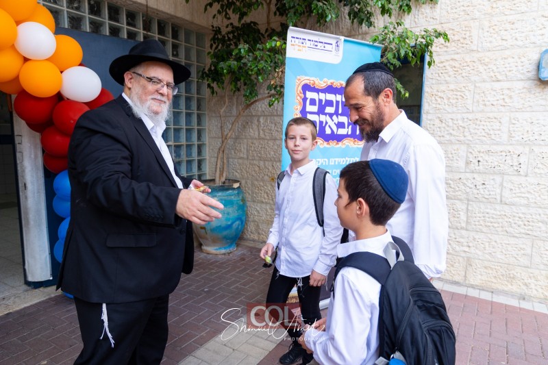 פתיחת שנה"ל: בת"ת 'תפארת מנחם' קיבל את הת' המנהל הרב שלמה ממן בברכת שנת הצלחה ושוקולד מתוק • נציג חב''ד וסגרה"ע הרב מאיר בר לב הגיש את ברכתו למנהל בשם ראש העיר • צילום: שמואל עמית