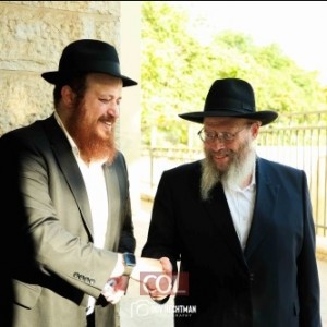וותיק המחנכים בתלמוד תורה חב"ד 'תורת אמת' בירושלים - הרב יעקב בלוי מרמת שלמה, בברכת הצלחה למנהל הצעיר והנמרץ הרב מנחם מענדל הרשקוביץ מביתר עלית (צילום: דוב בער הכטמן)
