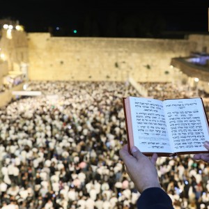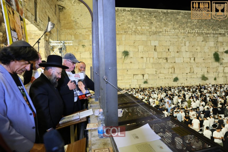 אֲדוֹן הַסְּלִיחוֹת: רבבות השתתפו הלילה במעמד סליחות ראשון לשנה זו ברחבת הכותל המערבי במעמד שורדי שבי ובני משפחות החטופים (צילום: הקרן למורשת הכותל המערבי)