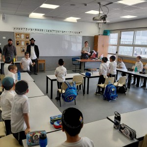 ח"כ וולדיגר בירכה את תלמידי כתה א' הנרגשים, איחלה להם שנת הצלחה ושיתפה אותם בדבריו של הרבי על חודש אלול כחודש חשבון הנפש.