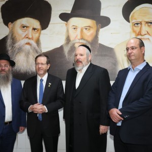 על רקע אדמו"רי חב"ד: נשיא המדינה יצחק (בוז'י) הרצוג פותח הבוקר את שנת הלימודים תשפ"ו בעיר החרדית ביתר עילית, בתלמוד תורה חב"ד בניהול הרב מענדי כהן וכאורח של ראש העיר מאיר רובינשטיין