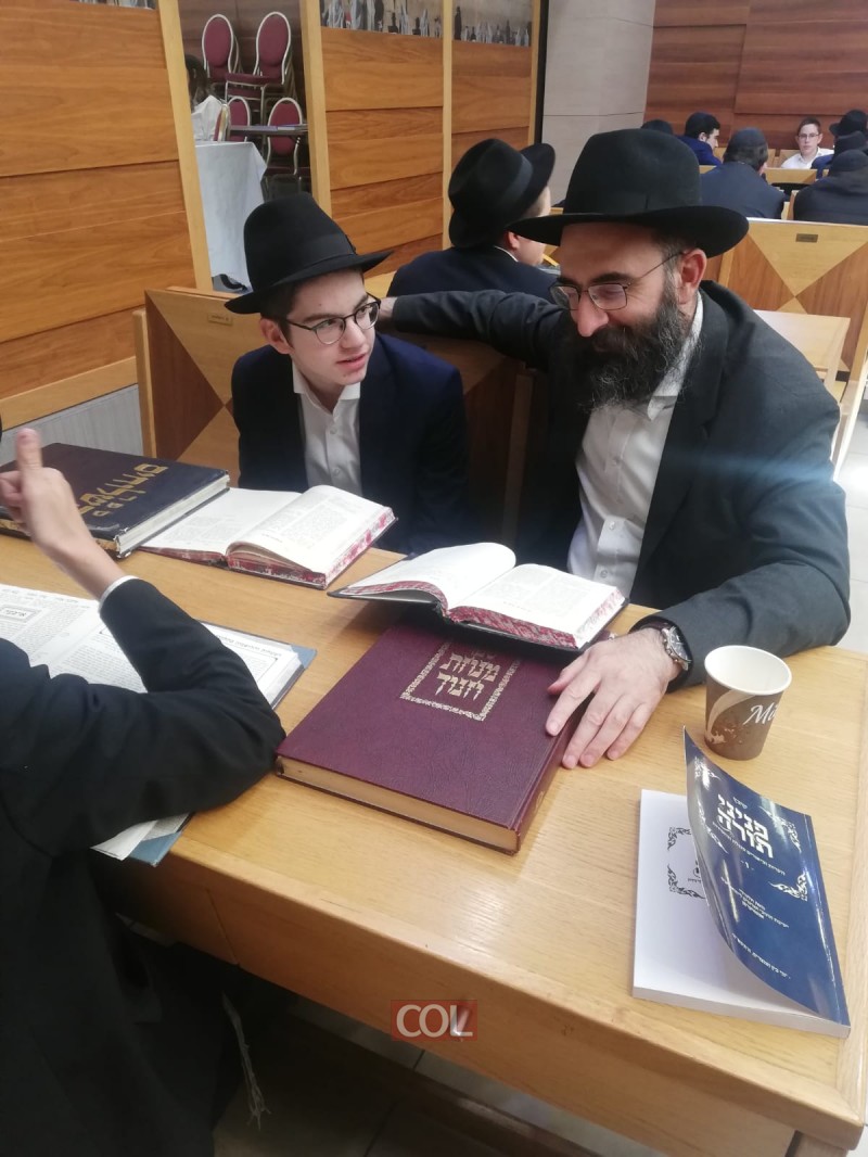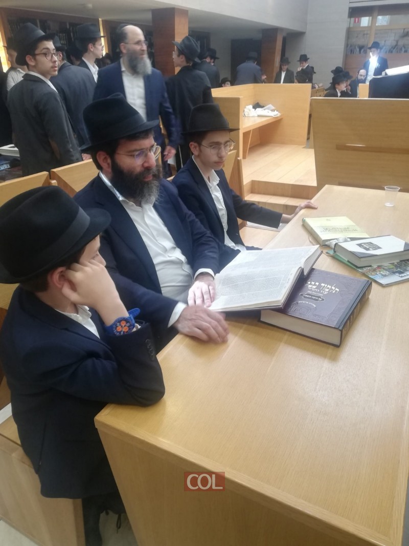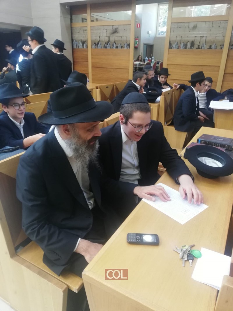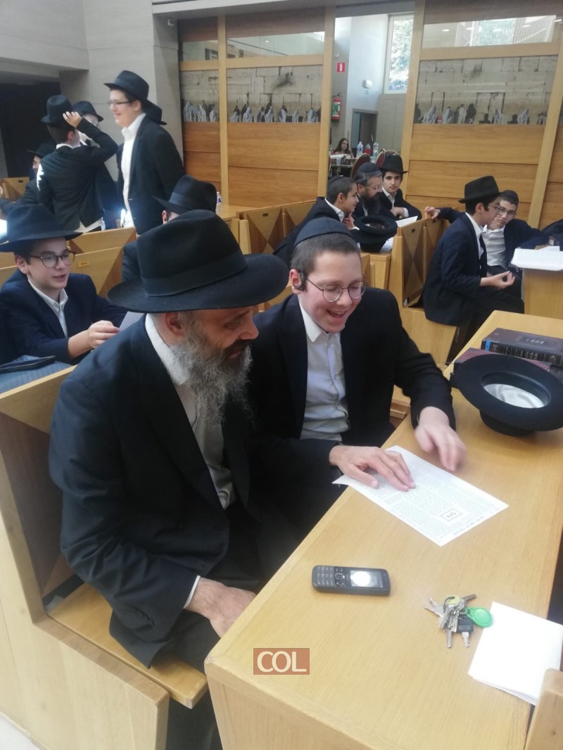 לאחר דברי הפתיחה למדו התלמידים יחד, אבות ובנים בהתרגשות ובחיות רבה את מסכת בבא קמא הנלמדת השנה בישיבה.