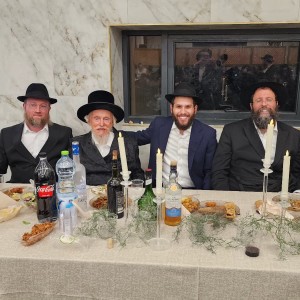 שמחת ה'ווארט' של התמים מענדי פינקוביץ' מאשקלון, בן השליח הרב אברהם פינקוביץ' מאשקלון ונכד המשפיע הרב חיים-שלום דייטש, עב"ג מוסי סגל, בת הרב דובי סגל, מנהל חדר חב"ד באלעד