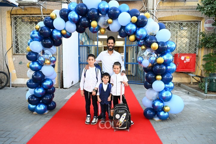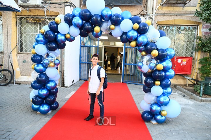 ברקע "שער הבלונים" המרהיב הצטלמו התלמידים והוריהם ומשם המשיכו לכיתות למיפגש עם המחנכים החדשים.