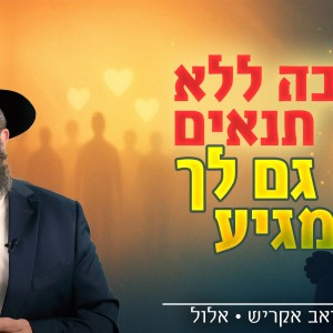 בשיעור מיוחד לרגל חודש אלול, הרב יואב אקריש עומד על הסוד העמוק של האהבה האמיתית - האהבה שלא תלויה בדבר. דרך המשל המפורסם של "המלך בשדה" מאדמו"ר הזקן, נגלה כיצד הקדוש ברוך הוא אוהב אותנו גם במקומות הכי לא טובים שלנו