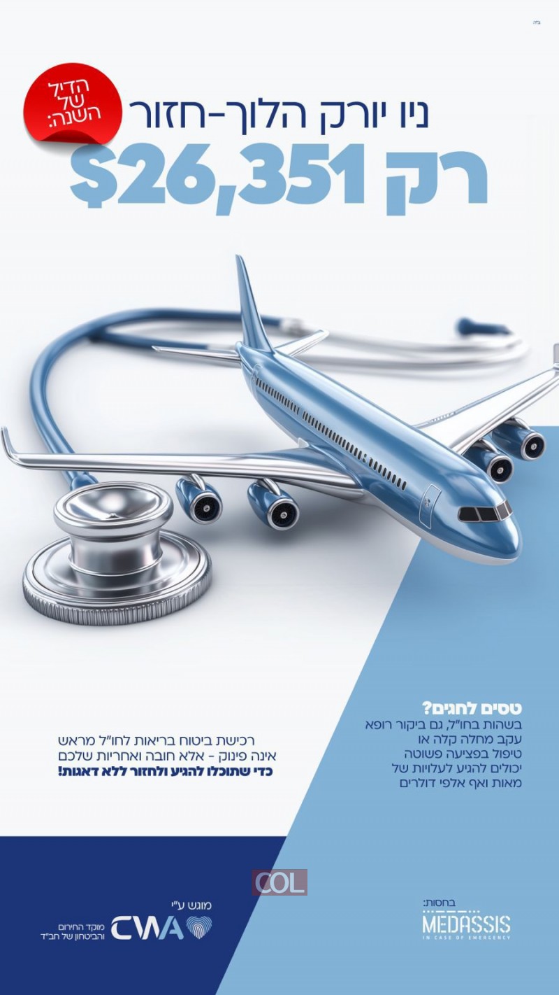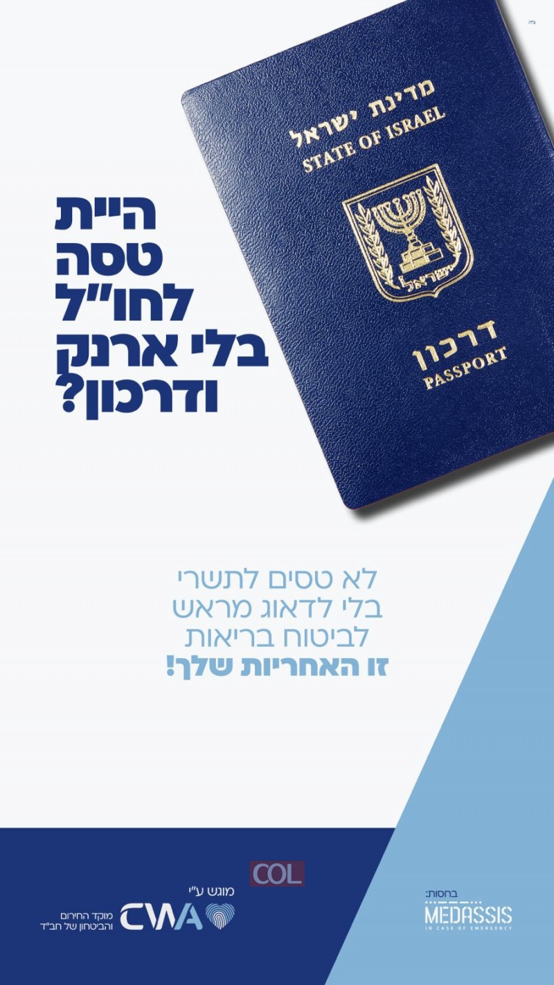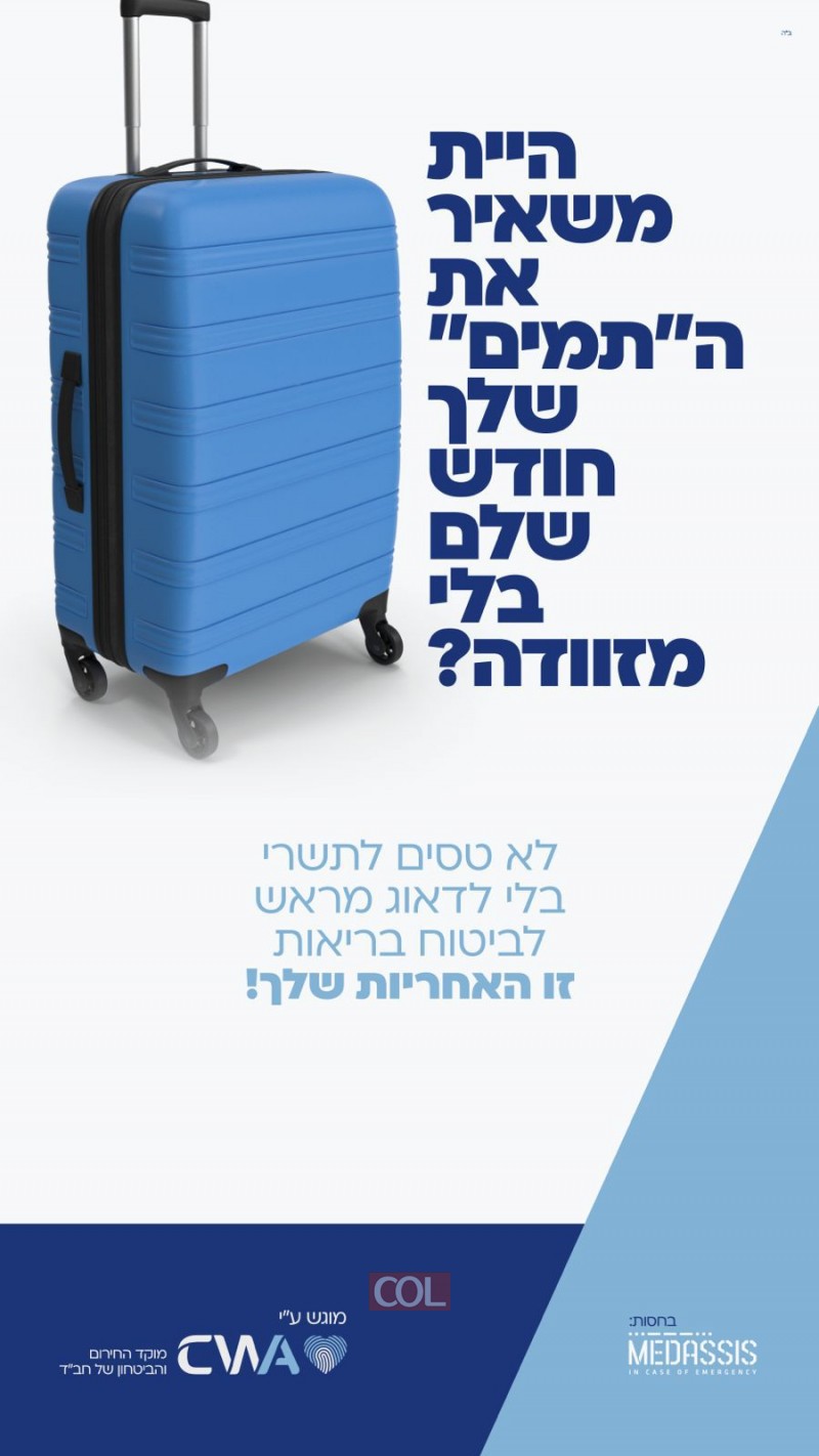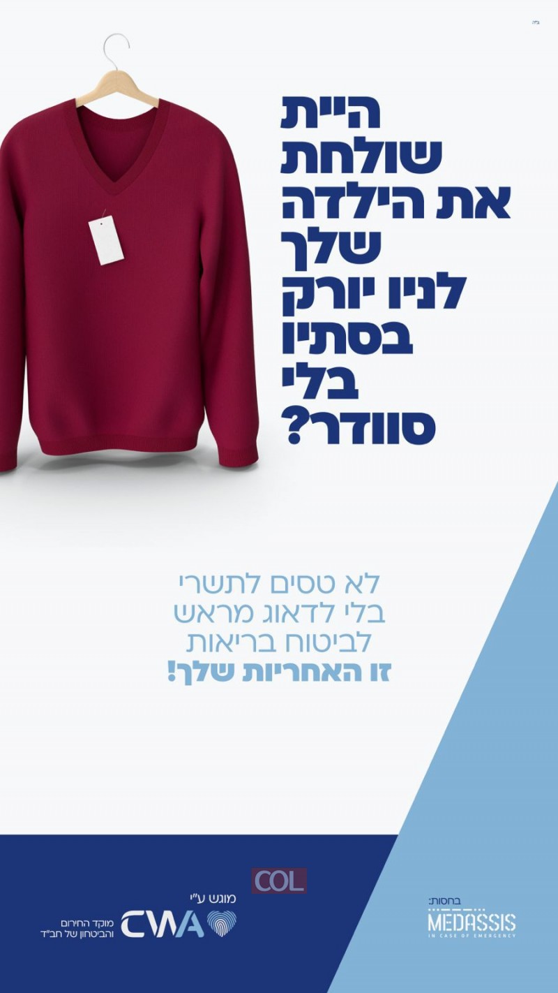 ונשמרתם מאוד לנפשותכם: מוקד החירום והביטחון של חב"ד (CWA) משיק קמפיין הסברה חדש, שמטרתו לעודד את אנ"ש לדאוג מראש לכל נושא הביטחון האישי והבריאותי של ילדיהם, בטרם טיסתם לחודש תשרי - לחצרות קודשנו, ובכלל לחו"ל.