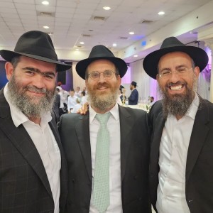 השליח הרב שלומי טביב מטאיפיי שבטייוואן, השליח הרב מענדי דבורקין מגואנגז'ו שבסין והשליח הרב שמוליק וישצקי מקובה שביפן - בכפר חב"ד בחתונת בת הרב דבורקין