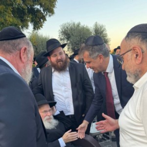 שר האנרגיה אלי כהן הגיע לאחל מזל טוב לרב אליהו יוחנן גוראריה שליט"א רב העיר חולון וחבר בי"ד רבני חב"ד, שהתאושש באורח נס מאירוע לבבי, הערב בחתונת נכדתו בת להרב דוד גוראריה