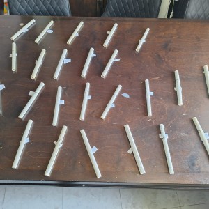 כפי המנהג: בימי חודש אלול בודקים שלוחי הרבי ומנהלי בתי חב"ד את המזוזות של התושבים ברחבי הארץ והעולם. בתמונה: מזוזות שנבדקו ע"י אחד מהשלוחים בארה"ק
