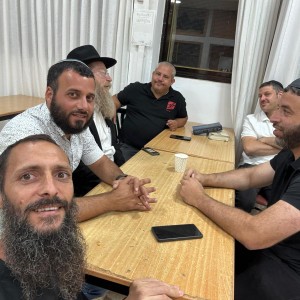 סגן ראש העיר קרית מלאכי עו"ד ר' יהודה קריספין באסיפה עם חברי הנהלת המניין לצעירים בראשות הרב משה הבר, בדיונים על ההקצאה שהתקבלה לבניית בית כנסת למנין
