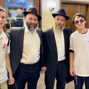 שליח הרבי באלמא-אטא שבקזחסטאן - הרב אלחנן כהן, בסיור ב-770 בכפר חב"ד, עם תלמידים יהודים שהגיעו לארץ-הקודש בכדי ללמוד תורה בשילוב שירות בצה"ל (צילום: שניאור שיף)