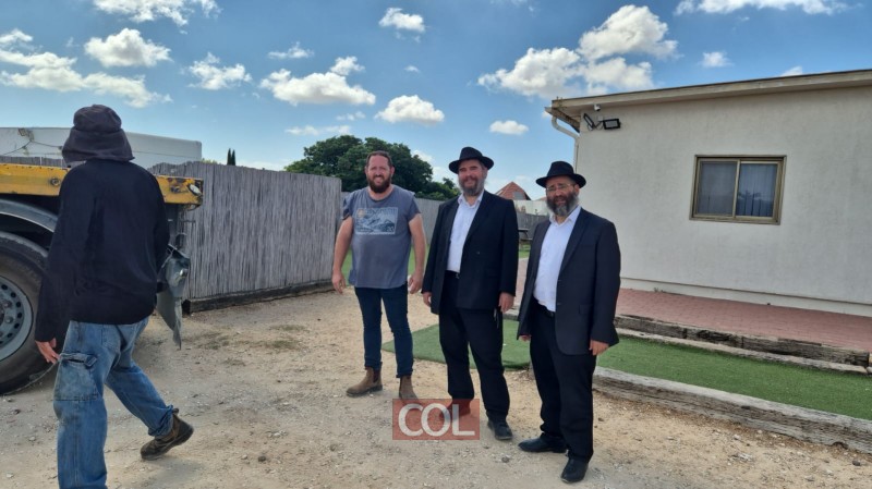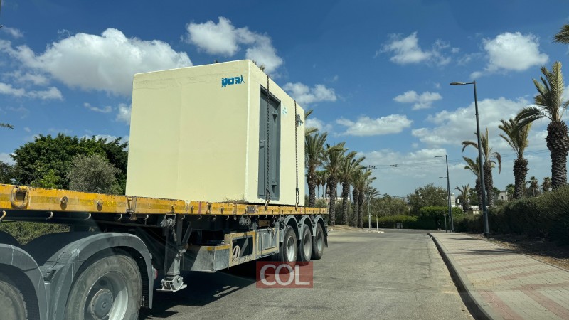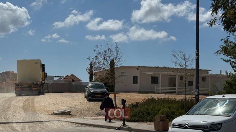 במיוחד בבוקר ששוגר טיל מתימן: בבית הכנסת 'גבעת ליובאוויטש' בכפר חב"ד לא לוקחים סיכון והגבאים דאגו להציב מיגונית בסמוך להיכל התפילה (צילום: שניאור שיף)