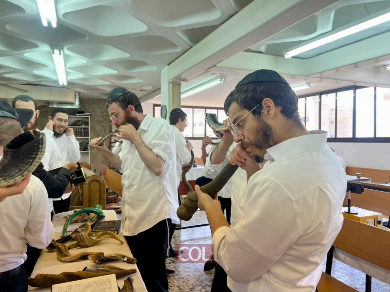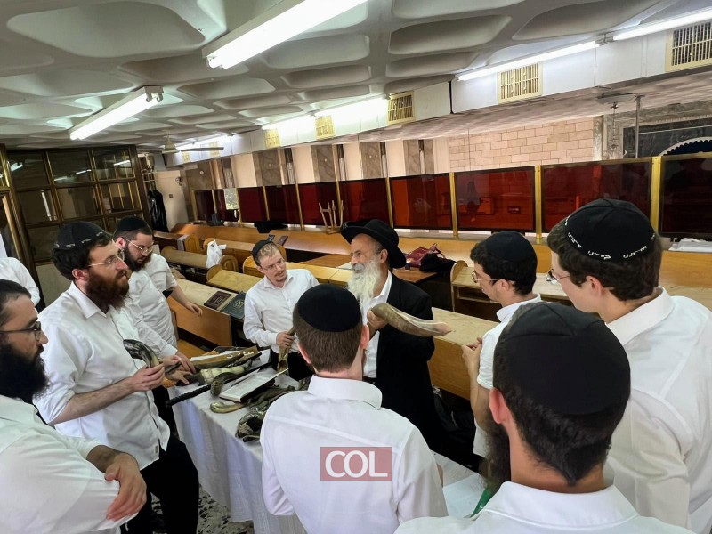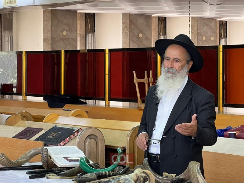 שליח הרבי ורב שכונות נאות יצחק וגבעת הזיתים בלוד - הרב נפתלי ועקנין, מסר שיעור בכשרות השופר וסוגי השופרות, יחד עם לימוד מעשי לתקיעת שופר כהלכה, בכולל 'תורה שלימה' בלוד בראשות הרב הלל מנחם גאז'