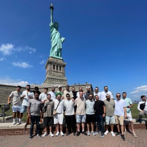 כבשו את האי: קבוצת סטודנטים מ'חב"ד בקמפוס' במכללת HIT בחולון, בטיול לפסל החירות במנהטן עם השליח הרב שמוליק חנונו, במסגרת המסע לחצרות קודשנו